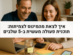 כלכלת המשפחה מתחילה בשליטה על תזרים מזומנים ותקציב מאוזן, אבל כשהמינוס לוחץ צריך תוכנית ברורה ליציאה מהמינוס, ולא צעדים מתוך לחץ. אם אתה רוצה מסלול מוכח לסגירת המינוס בבנק וליציאה מהחובות תוך שמירה על ניהול תקציב משפחתי חכם, קרא את המדריך שלי: איך לצאת מהמינוס לצמיתות: תוכנית פעולה מעשית ב-5 שלבים. שם אני מפרט שלב אחר שלב איך לעצור דליפות, לבנות סדרי עדיפויות, להגדיל הכנסות ולשמור על תקציב חיובי.